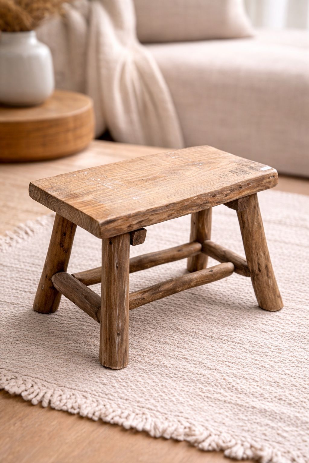 Banquito hecha con madera recuperada.