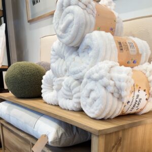 Manta texturada de algodón suave y abrigado, con relieves horizontales acanalados. Perfecta para el sillón o la cama.